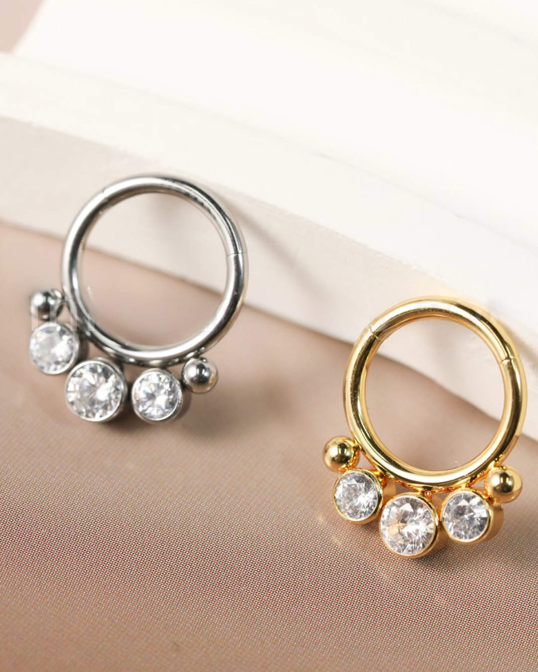 Piercing Argola Aço Cirúrgico 3 Zircônias Cod 14273 14272