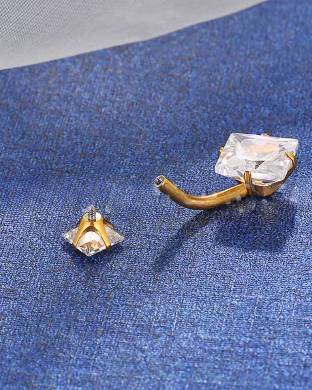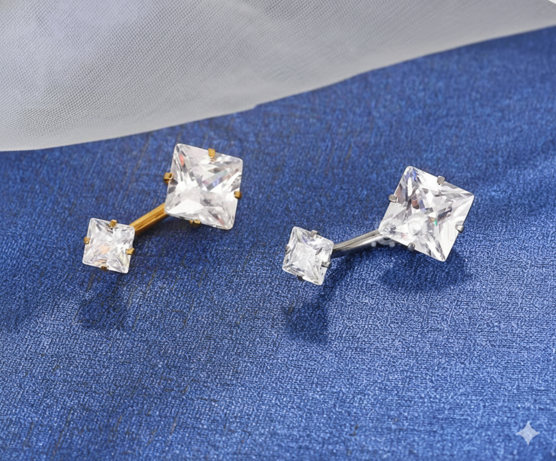 Piercing Aço Cirúrgico Banana 2 Pedras Zircônia Cravejada Quadrada Cod 1065 1066
