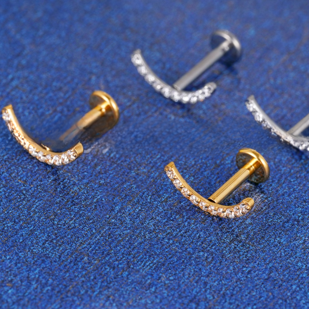 Piercing Labret Aço Cirúrgico Curvo Zircônia Cravejada Cod 13424