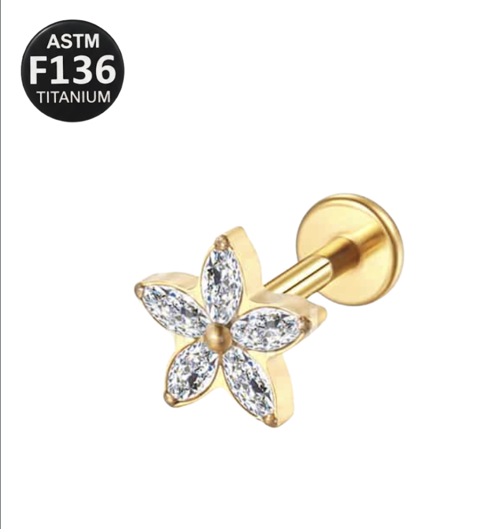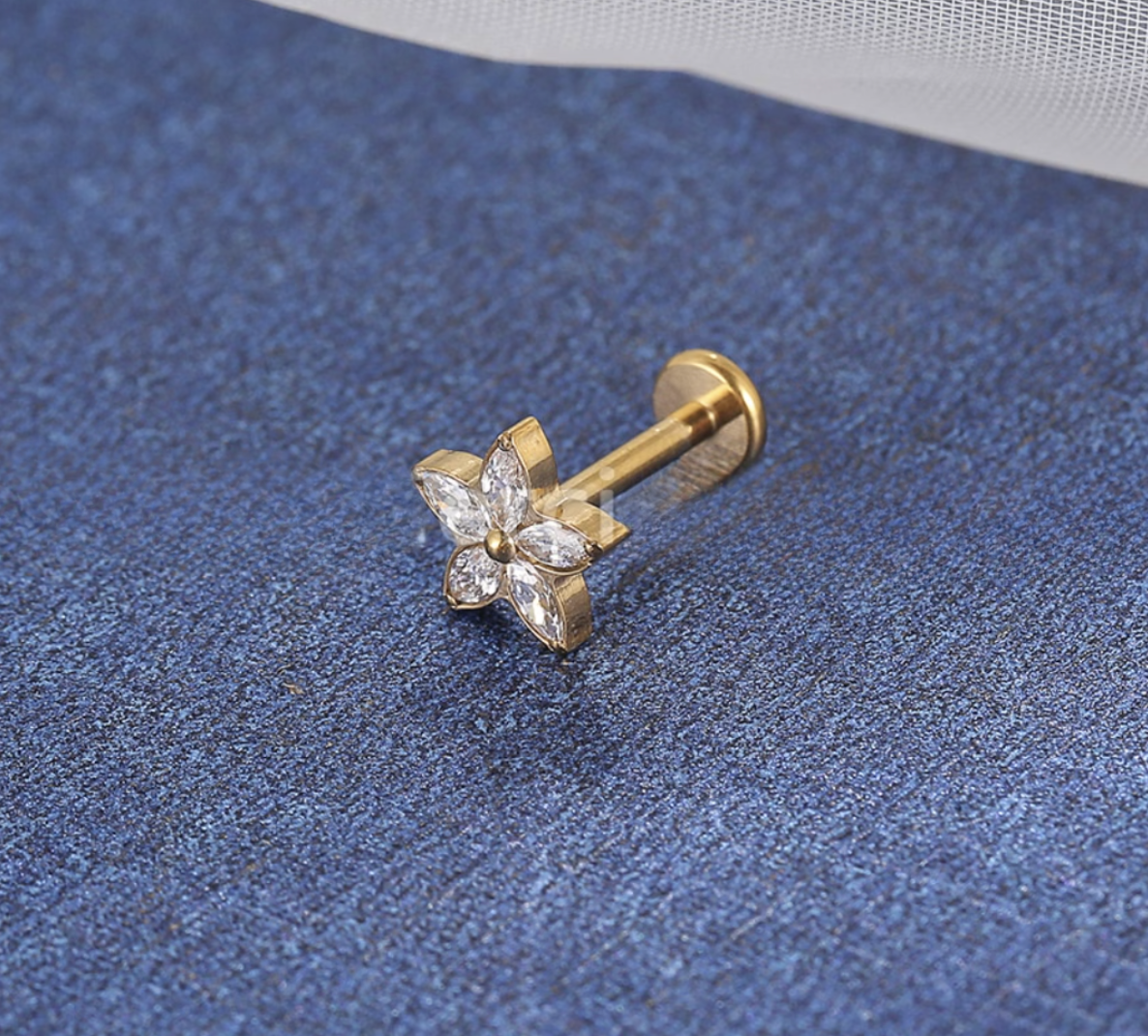 Piercing Labret Titânio Flor Zircônia Cravejada Cod TC125