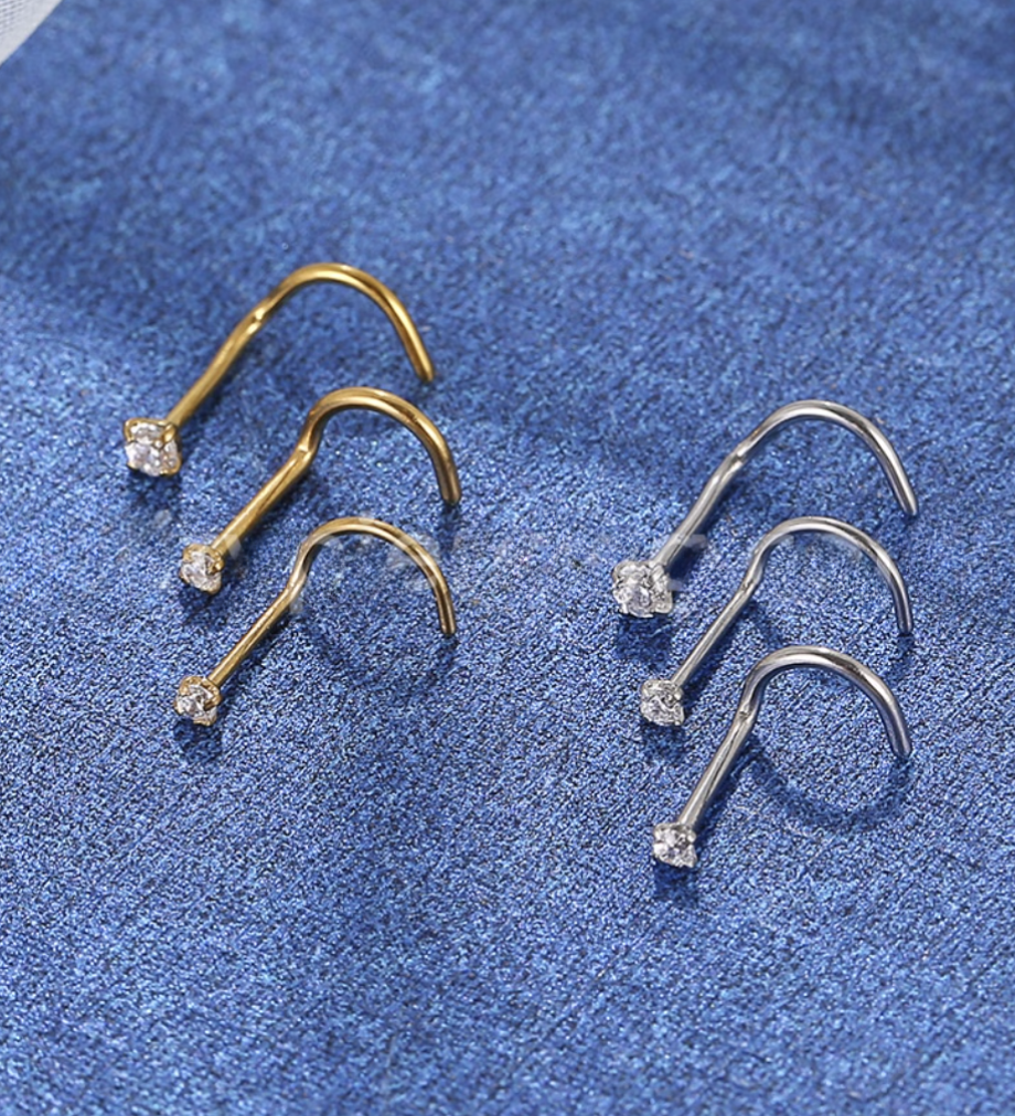 Piercing Nostril Aço Cirúrgico Zircônia Cravejada Redonda Cod 1052 1051
